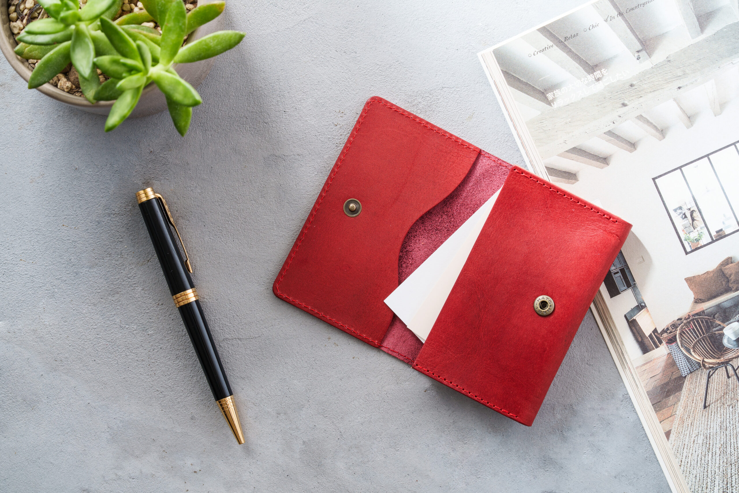 【熊野牛レザー】名刺入れ(高野山レッド(赤))